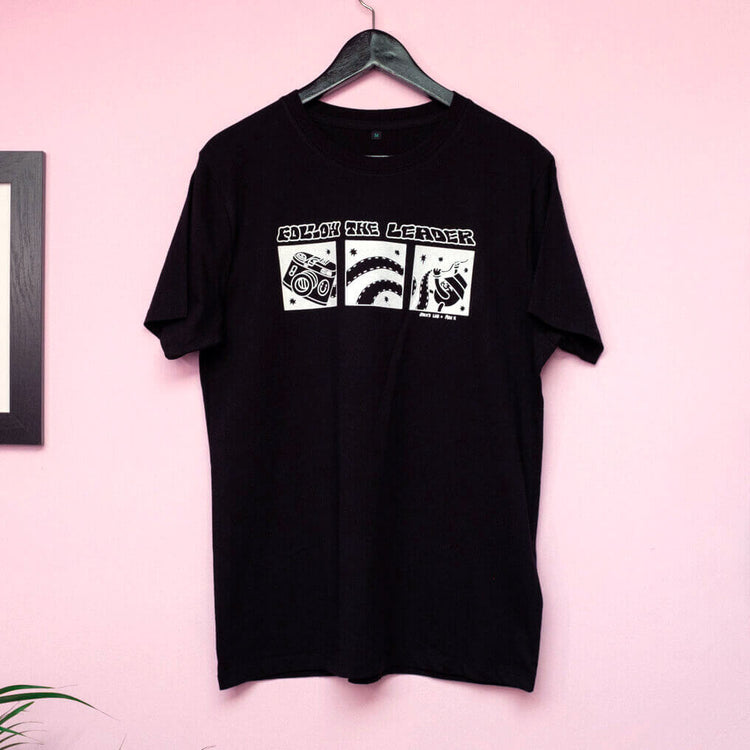 We teamed up with the brilliant local Bristol-based illustrator Max K, who designed up these awesome tees for us. With the 'Follow The Leader' chest print.